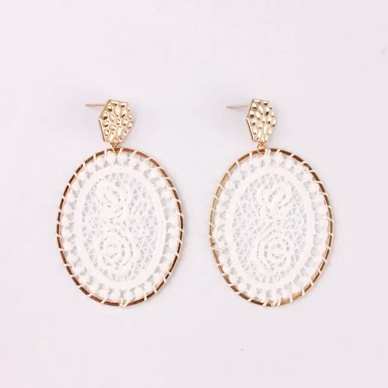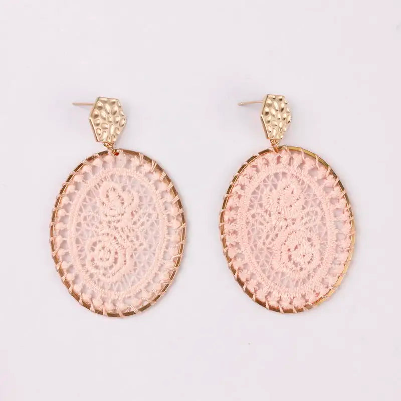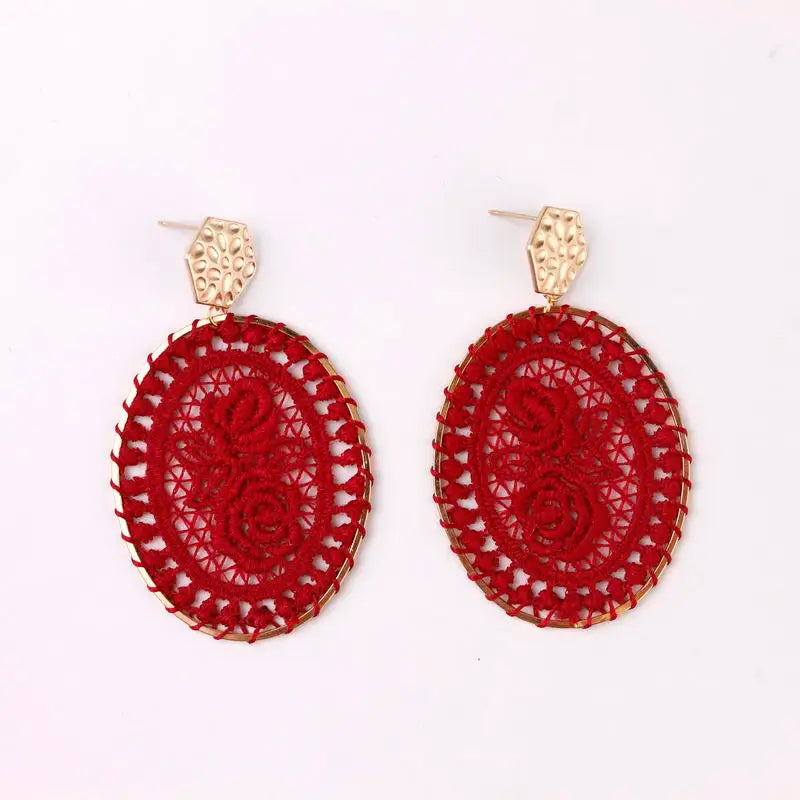 Beauty and grace. That's what these earrings will resemble when you pair them with your favorite spring or summer dress! Choose from several color options of inlaid embroidery.